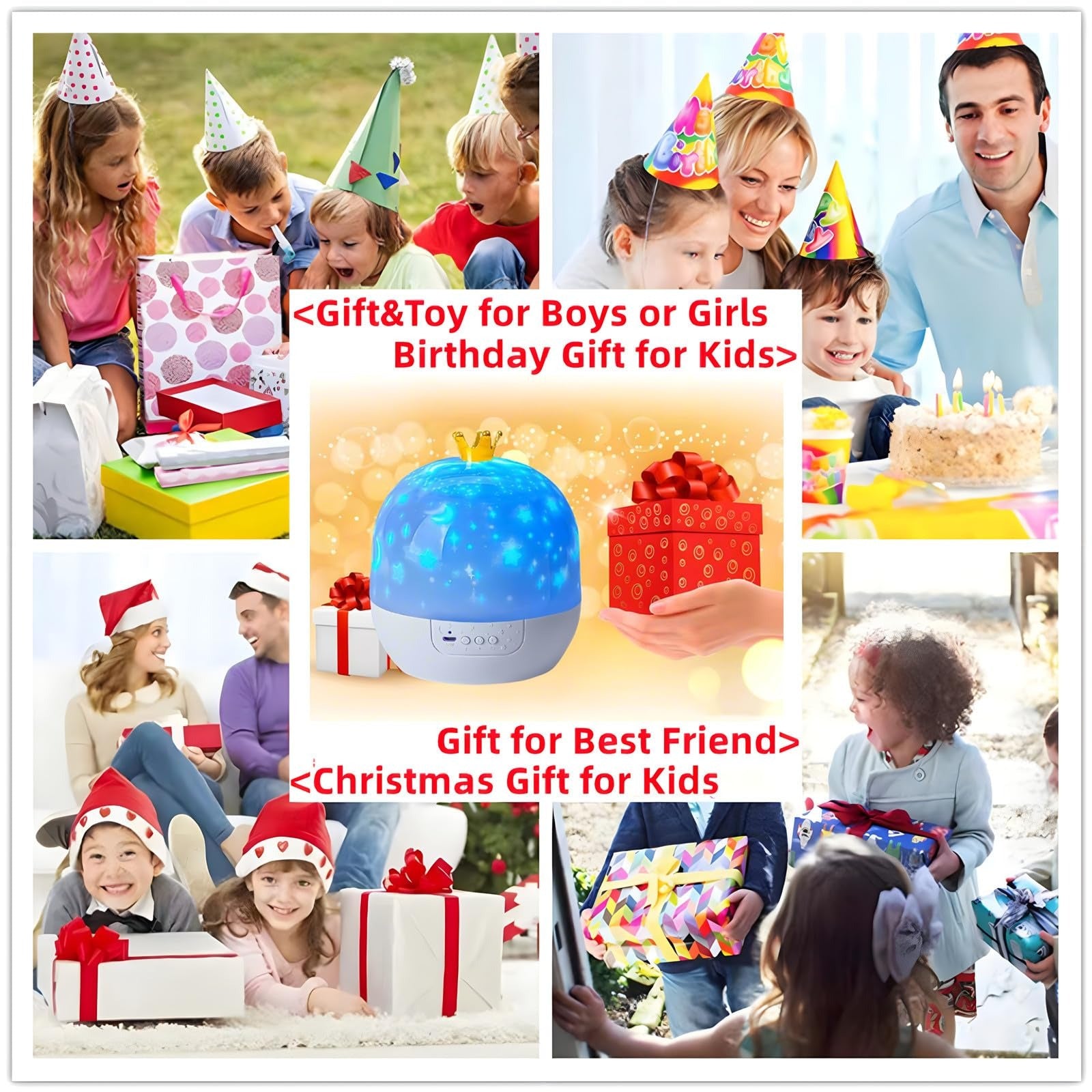Mix & match white, blue, yellow LEDs for six lighting modes, freeze or rotate the sky, and dial brightness from 10 % to 100 % to suit playtime or bedtime.