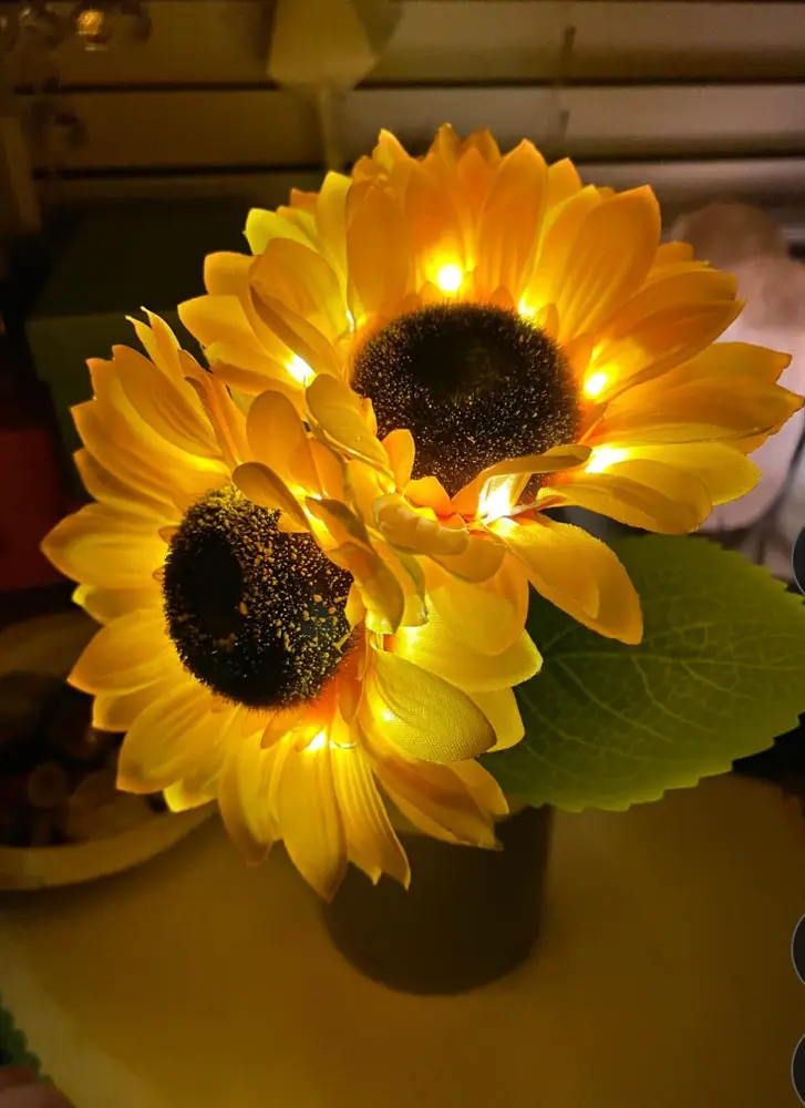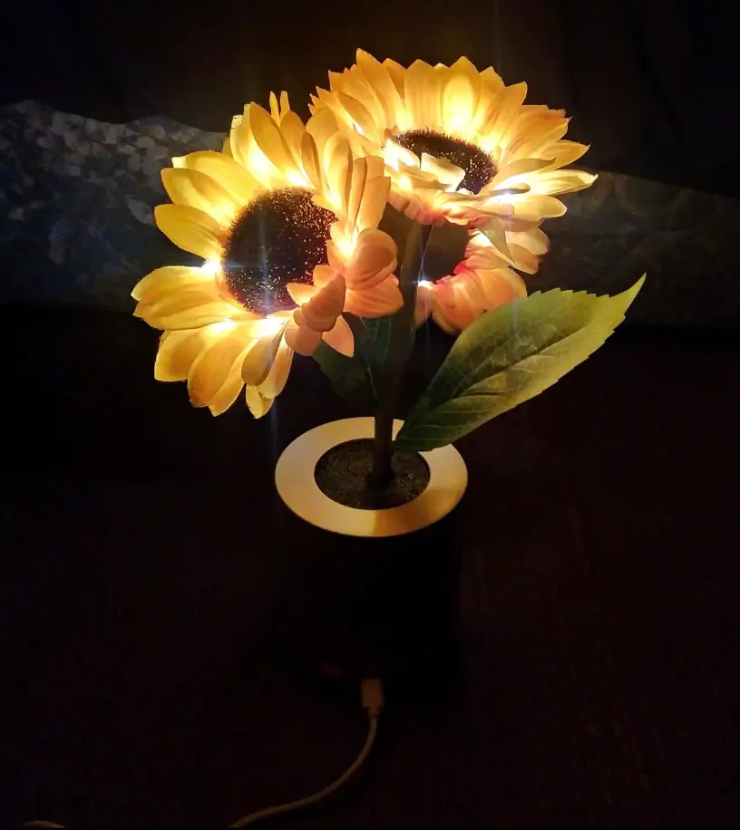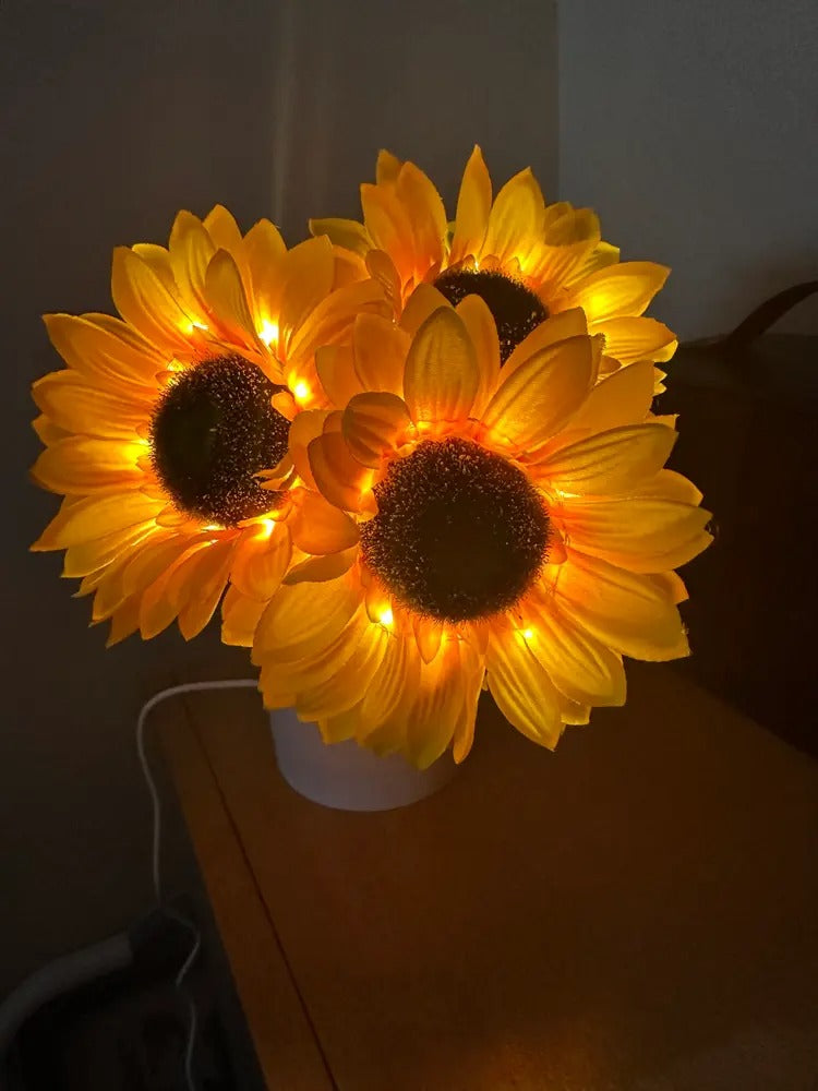 The sunflower always faces the sun, meaning "you are my sunshine", is a symbol of warmth, positivity and happiness. It will add some rustic beauty to your space. Push-button switch, the brightness can be adjusted to one level and two levels, convenient and worry-free. The lamp can be both a nice little decoration or a night light and it looks amazing in both cases. Light source: warm light LED.